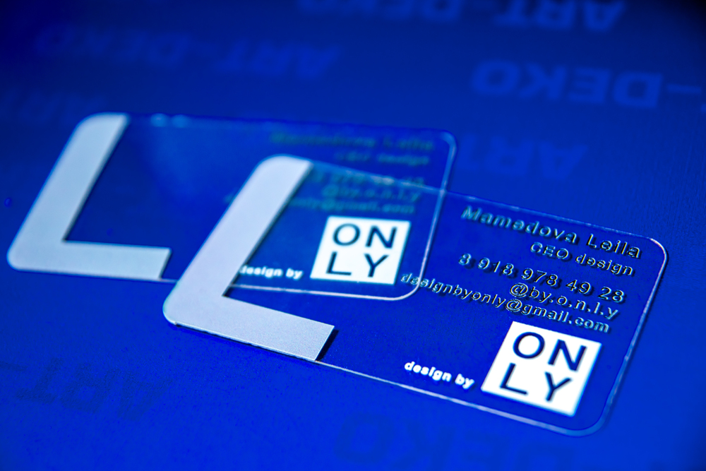 Шелкографию. Стоимость печати выше, чем у предыдущих способов, но такая технология позволяет получать оригинальные визитные карточки из любого материала.